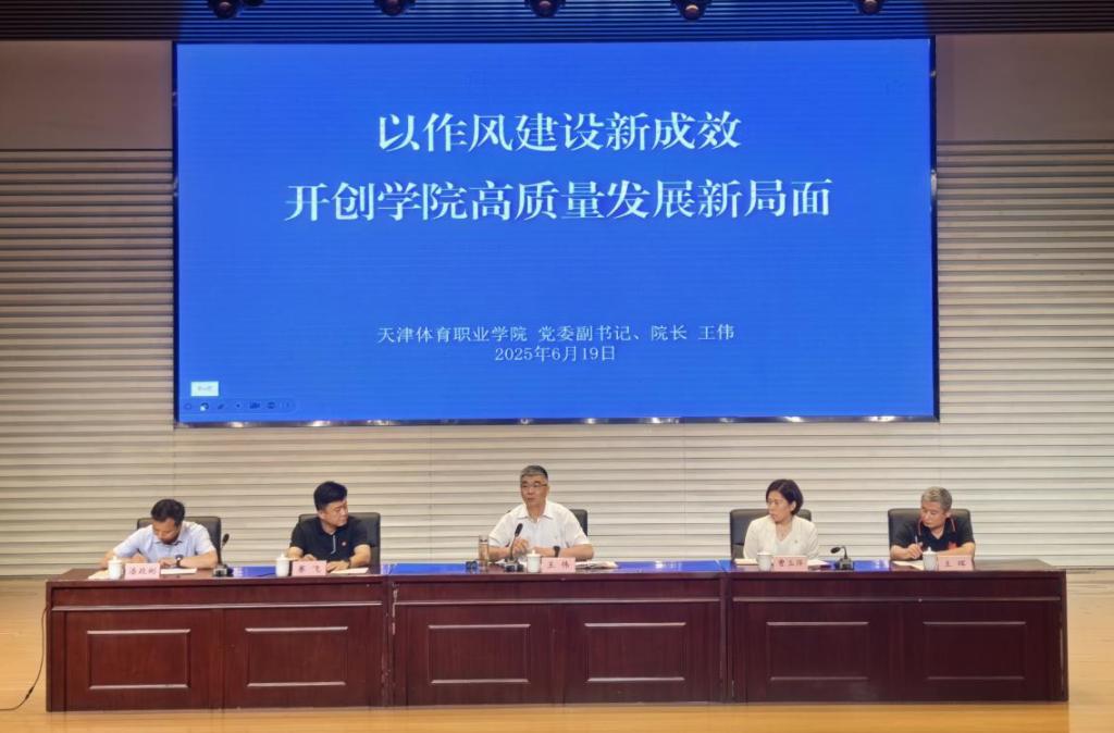 最后,学院党委副书记、院长传达市体育局领导党课和讲话要求,并为全体人员讲授《以作风建设新成效开创学院高质量发展新局面》专题党课。此次党课按照全市警示教育大会精神、6月14日市体育局“强化作风建设,抓实训练备战”推动会暨党组书记专题党课报告会具体工作要求,结合学院高质量发展布局和近期重点工作,从思想作风、学风、工作作风、纪律作风、生活作风几个方面,深度阐释作风建设的理论内涵和实践要求,结合实际解读作风建设与廉洁育人的内在联系,为推动学院全面从严治党向纵深发展奠定了思想基础和实践基石。